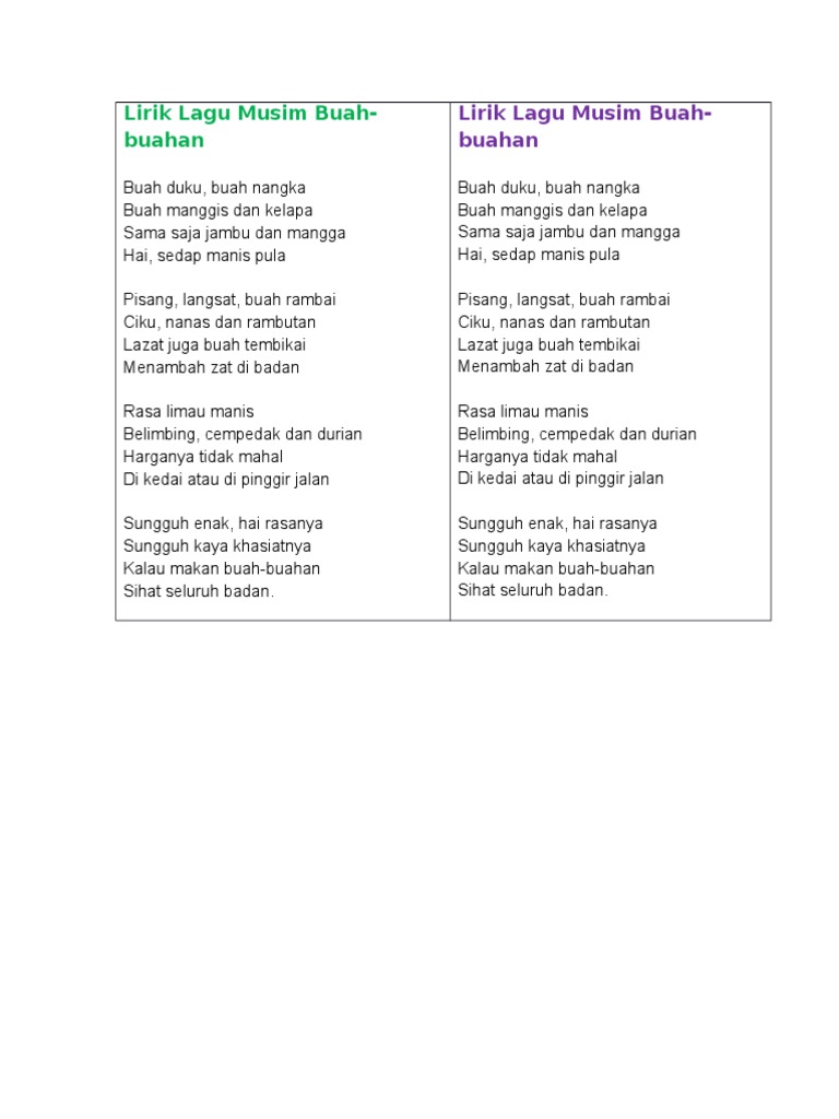 Lirik Lagu Buah Buahan Tempatan Pdf